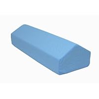 (More customer reviews)The dimensions are 17"Lx10"Wx7"H. 17" is just enough so your legs don't fall off if you are awake, but I wish it were wider. I wanted to use it for sleeping and if you lean or roll to one side your legs will definitely come off. If you've seen the picture on the actual packaging or on another site (not the amazon picture shown here), it looks 30-40" long which is totally wrong; I'd guess it's two cushions side-by-side. The foam is pretty firm but comfortable enough. The blue fabric cover comes off which I assume is washable.