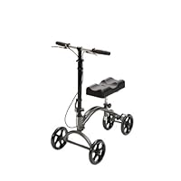 (More customer reviews)I am a physician and mother of 6 little childern and after I broke my ankle, I knew that I could not be very effective at home on crutches. I bought this brand of steerable scooters for my recovery for $224 and free shipping on ebay which was considerably less expensive than the $35 weekly rental fee. Since I purchased this over a month ago, prices are now into the 300's, but still more reasonable than other brands. I had tried out the brand recommended by the orthopedics office which costs over $800 and this one performed just as well. It is very sturdy, easy to maneuver and steer. The leg cushion is comfortable. Many other brands charge extra for the handy basket, but this one was included. Some talk about "all terrain" wheels.....I honestly did not attempt to maneuver on "all terrains" with a broken ankle which required a plate a screws to fix.... I just felt as it that would be silly to think I should be riding over grass! I found these wheels to be completely fine. I see no reason what so ever to pay more money for another brand. I have been thrilled with the product!