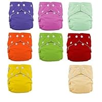 (More customer reviews)These diapers are great. I love them. I received them from a registry for my soon expected baby boy and I tried them on my 3 year old when they got here just to make sure they really go all the way up to potty training size. They fit very well. The inserts are bulky so I registered for some small Joey-Bunz liners to reduce the bulk, but every diaper comes with two liners, so that's great! Definitely won't have to buy medium or large sized ones for these diapers. My only complaint: I know the info says the colors will be based on availability but I can't hide my disappointment that I got 2 baby blue diapers, 2 turquoise blue, and 2 dark blue. I got three shades of one color! So the picture shows variety, but there's definitely a chance you could end up with multiple duplicates and not a very exciting range of colors. I know I chose "boy colors" but dear god. Since I wanted a wider range, I should've chosen "neutral colors", but then I'm sure I would've ended up with two lilac purple, two beige, and other potentially undesirable combinations.